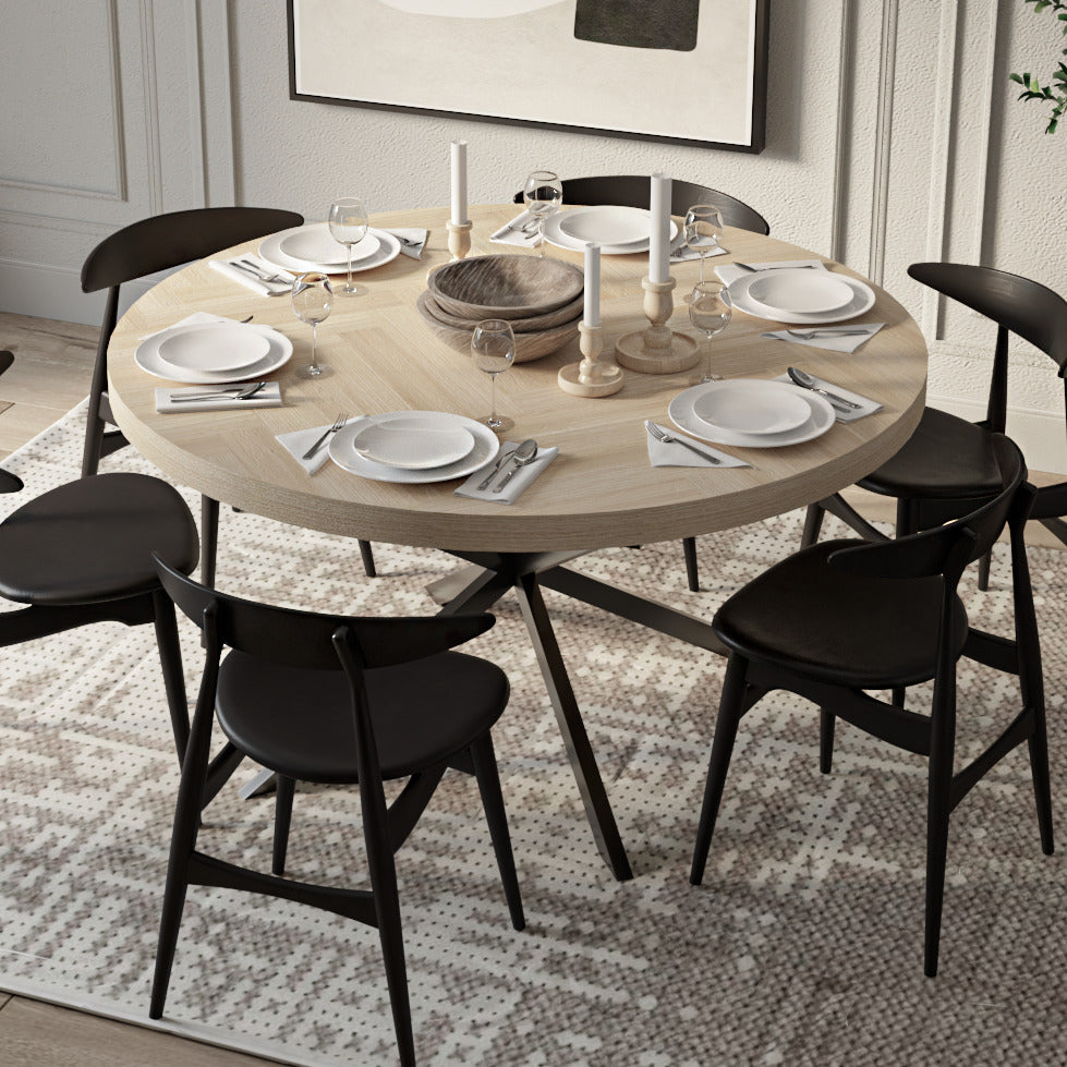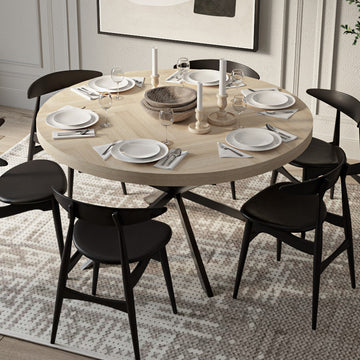 طاولة طعام مستديرة من خشب البلوط من إيلا