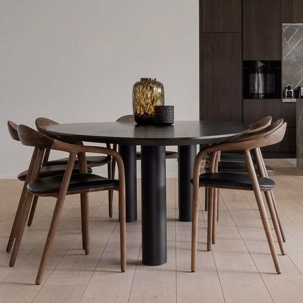 طاولة طعام مستديرة من خشب الجوز من إيلا