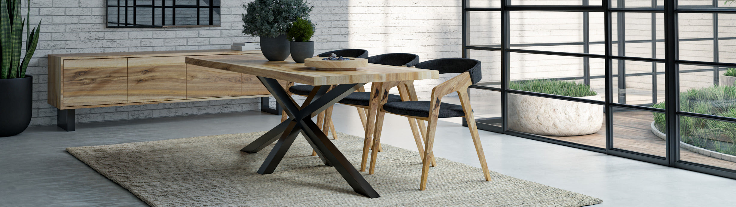 طاولات طعام مصنوعة يدوياً من خشب الجوز لكل مناسبة