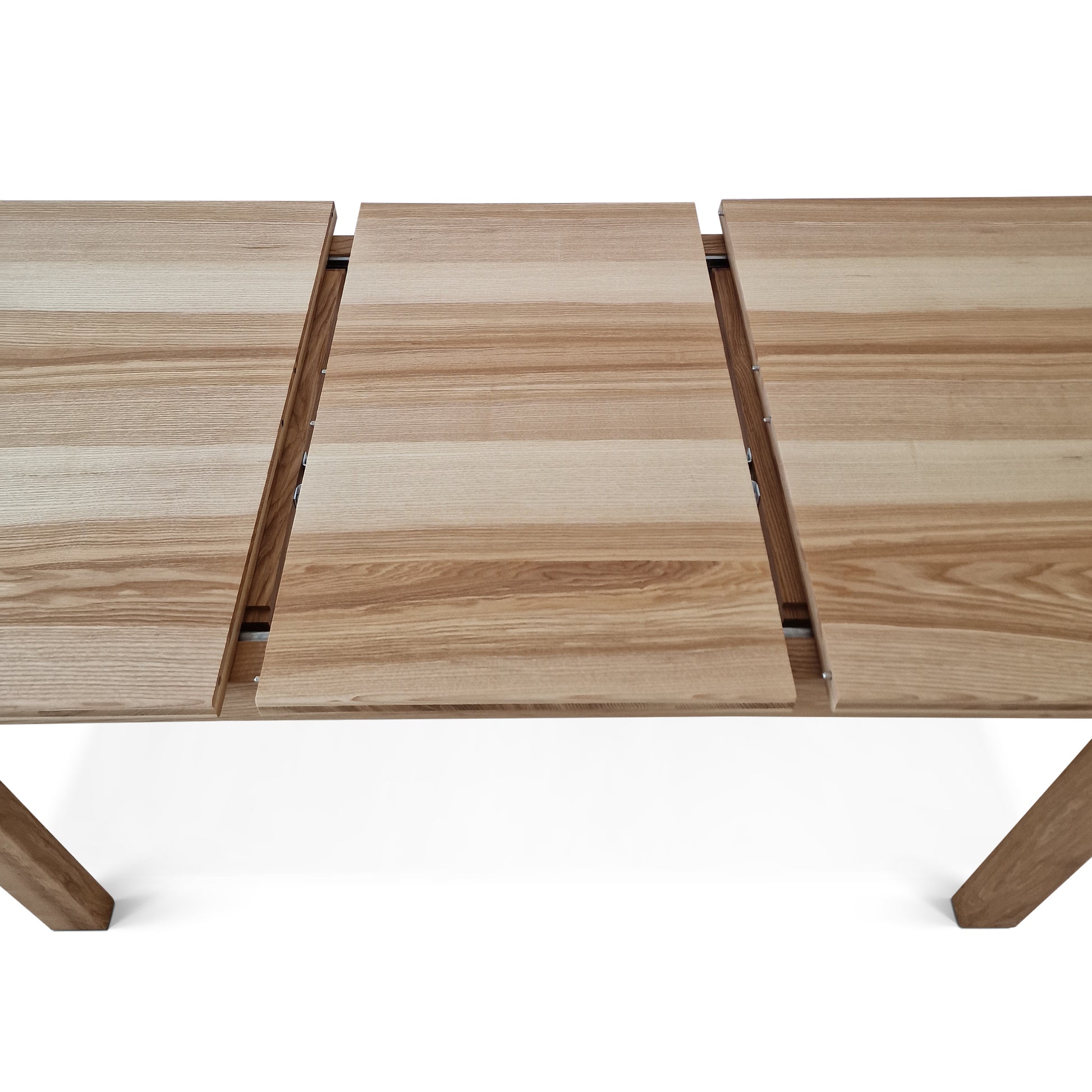جميع ألواح التمديد لدينا مصنوعة من ألواح صلبة وتأتي من نفس شجرة الطاولة الرئيسية. ممتد تحتوي الطاولة على حبة واحدة جميلة متواصلة.