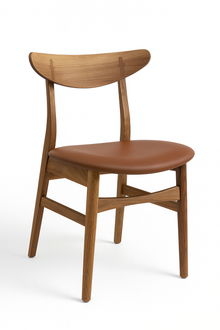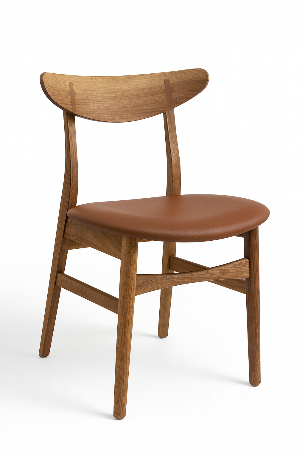 The Eva dining chair is a beautifully handcrafted piece, made from solid European walnut and upholstered in rich Italian calf leather. Its frame is finished with Rubio Monocoat two-component wood oil, providing exceptional durability and long-lasting wear resistance. The generously padded seat, lined with 30 mm high-density foam, ensures outstanding sitting comfort, making it ideal for long dinners and gatherings. We currently have 4 chairs in stock, all in excellent, almost-new condition, having only been showcased in a showroom.
