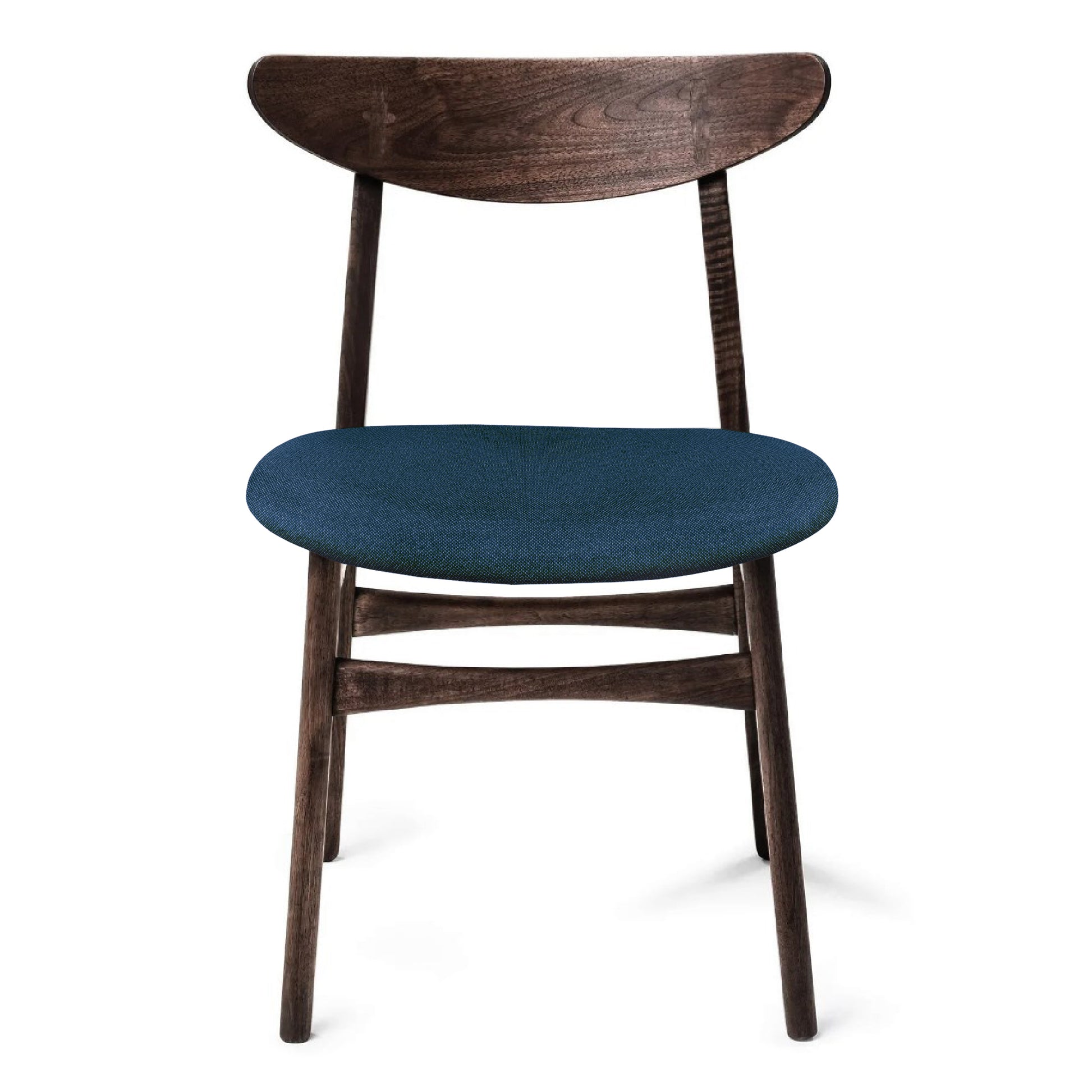 كرسي الطعام إيفا وولنت مصنوع يدوياً من الجوز الأوروبي والجلد الإيطالي أو القماش المقاوم للبقع. يتم معالجة الإطار بزيت خشب من مكونين من روبيو مونوكوت لضمان مقاومة التآكل والمتانة المثلى. المقعد مصنوع من جلد العجل الإيطالي ومبطن برغوة بسمك 30 مم لراحة جلوس مثالية.