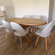 The Gigi Oval Oak Table – a striking centerpiece for your dining space. Crafted from premium European oak, this 200×90 cm table combines timeless design with everyday functionality. Its sculptural interlocking legs ensure lasting stability, while the oval Natural Oak top creates a warm, inviting setting for family meals and gatherings