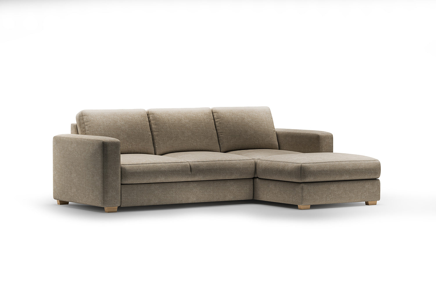 The Ivy is available in three distinct configurations to suit your space: the 3-seat corner short ( cm), the 3-seat corner long ( cm), or the expansive 3-seat corner long + short ( cm). Each version seamlessly transforms into a generous cm sleeping area, offering superior comfort for both lounging and overnight rest.