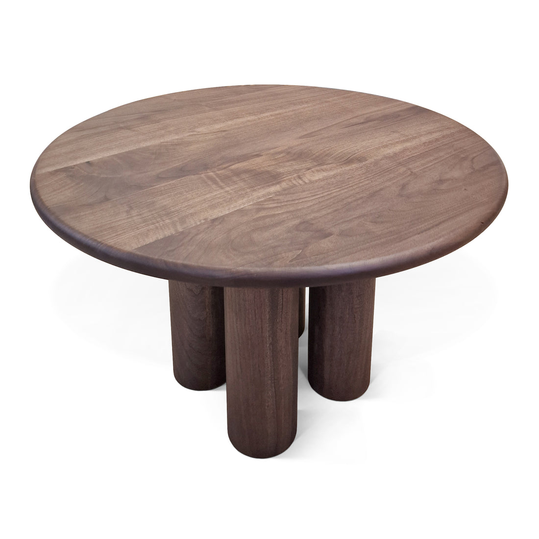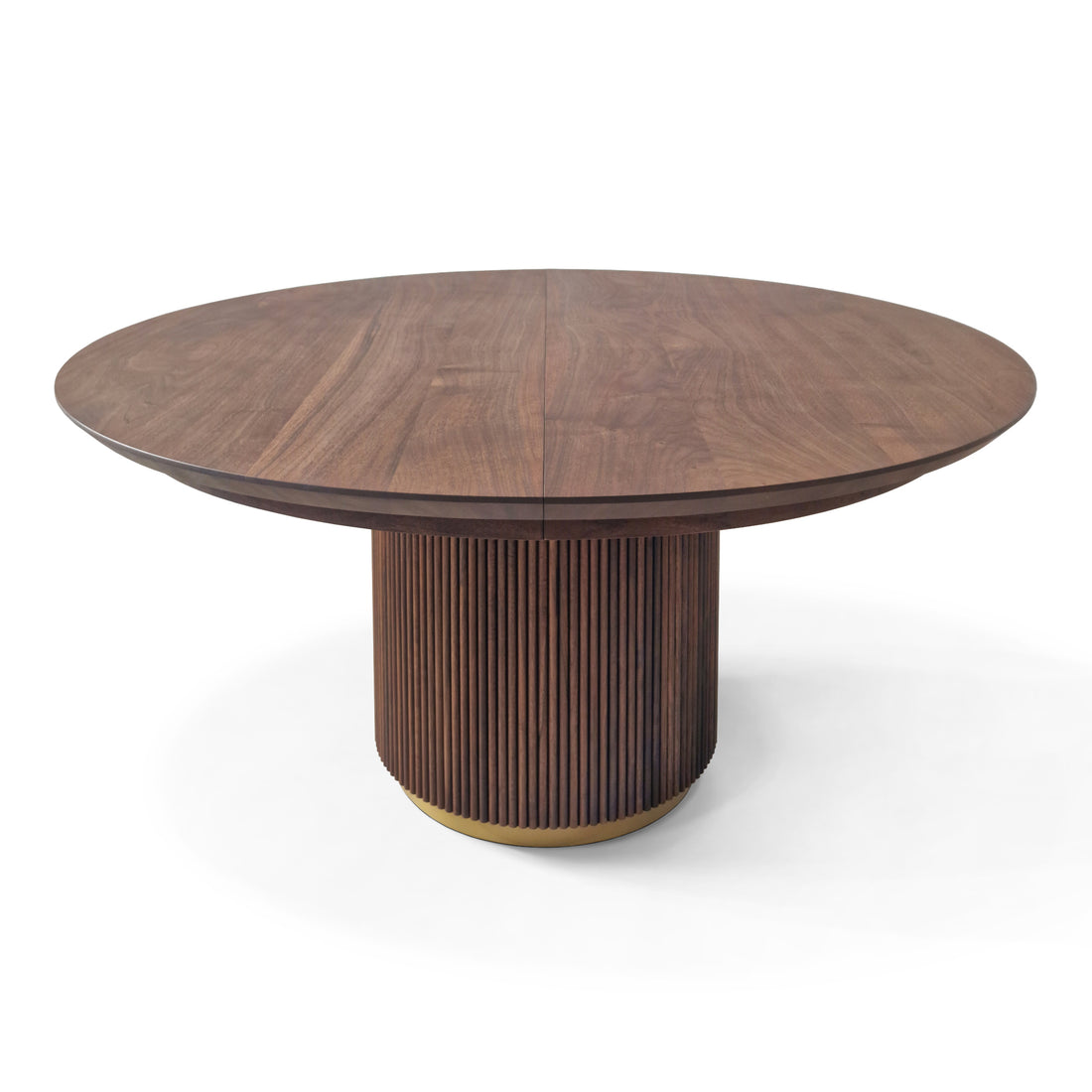 Chiara Walnut Round Dining Table, featuring either a solid walnut, walnut veneer or thermally treated...