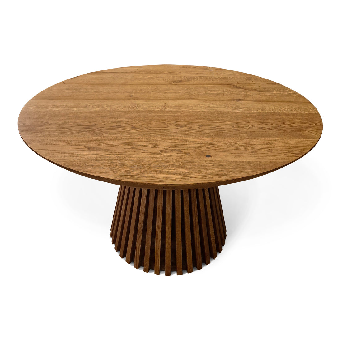 Dive into the seamless blend of warmth and modernity with our round oak dining room...