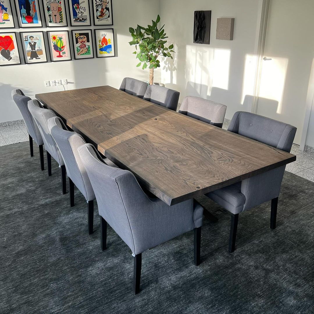 Cecilia oak dining room table boasts a sleek, contemporary design, characterised by its smooth lines...