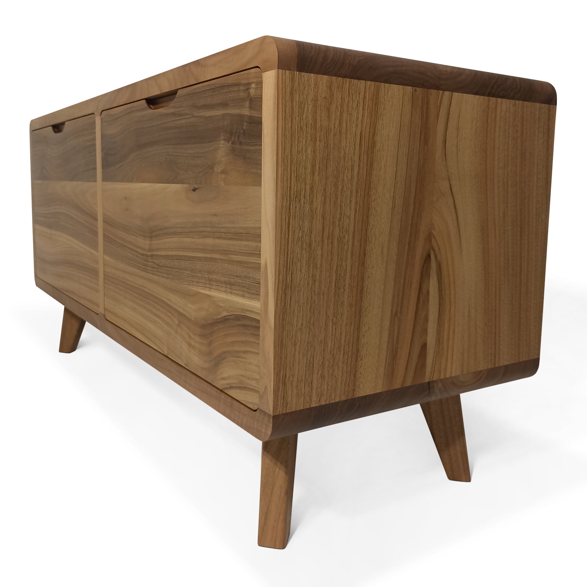 The walnut sideboard is a sleek and elegant piece. It features a rich, warm Osmo oil finish highlighting the natural wood grain. Sizes can be customized free of charge to fit your specific needs.