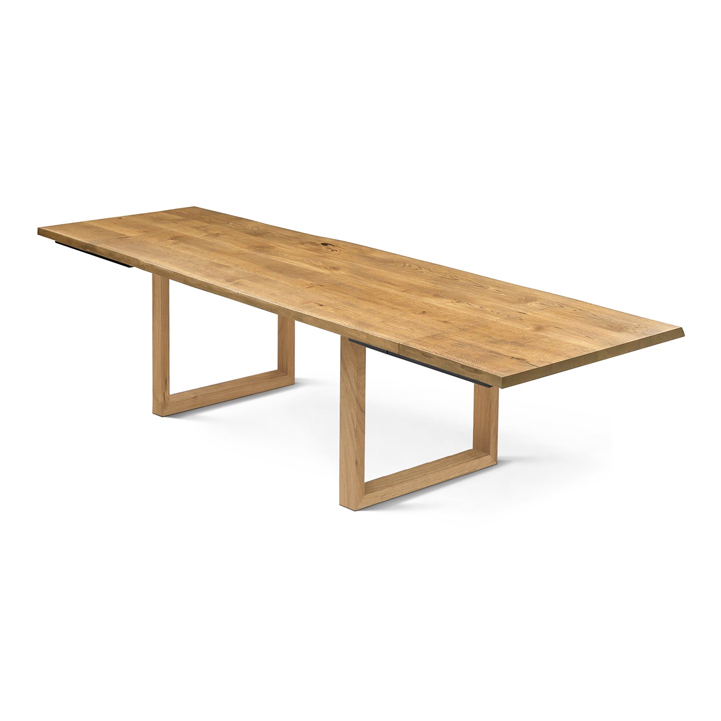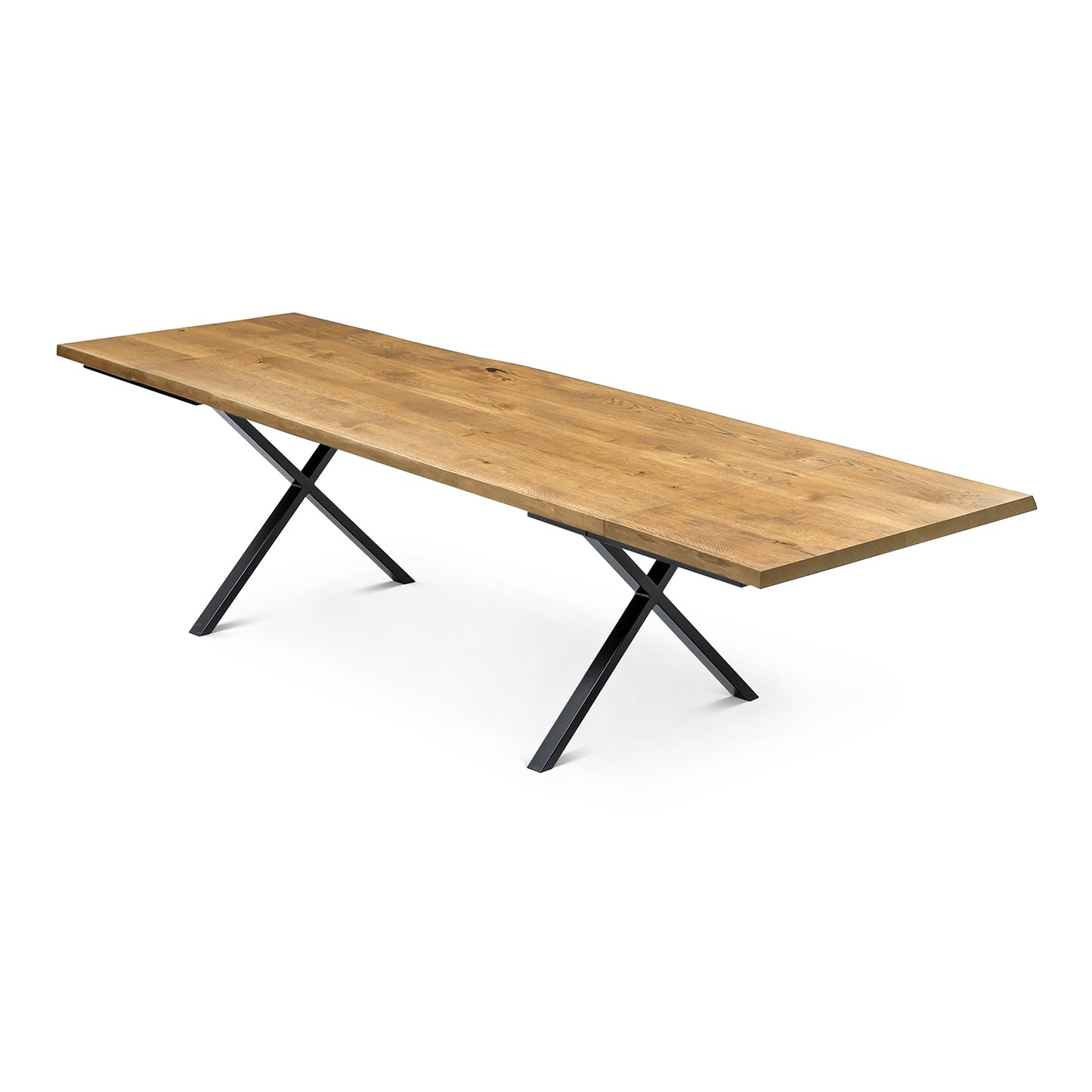 All our extension panels are made of solid planks and come from the same tree as the main table. Extended table has one uninterrupted beautiful grain.