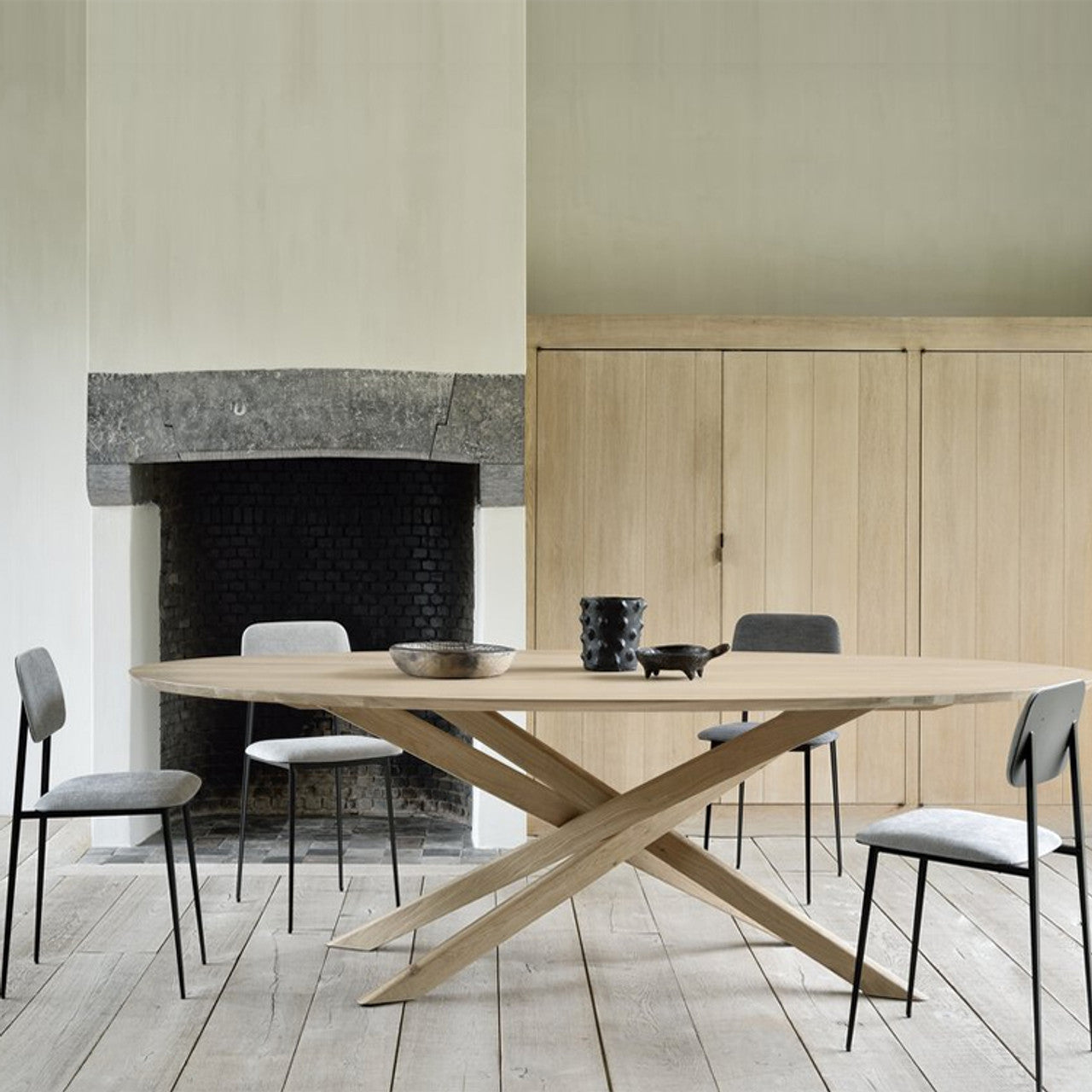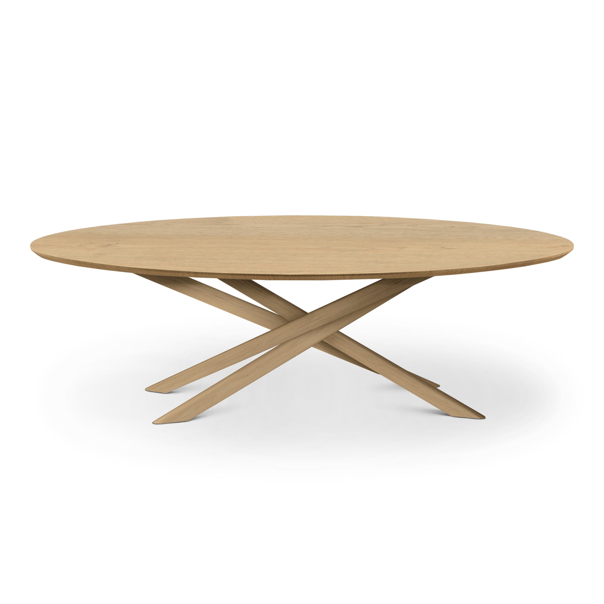The Gigi Oval Oak Table seamlessly blends sculptural elegance with practical functionality. Crafted from solid oak, its distinctive interlocking legs create a perfect balance of stability and style. The oval tabletop enhances togetherness, making it easy to engage with all group and ensuring a natural flow of conversation, customisable to the nearest cm in sizes from 100 to 350 cm.