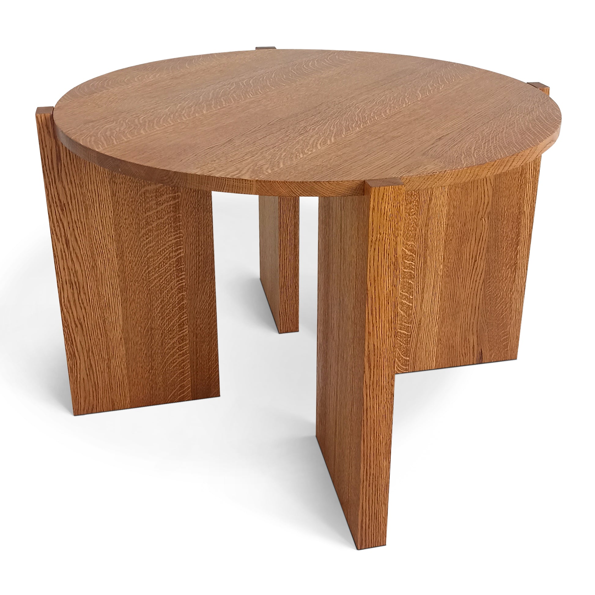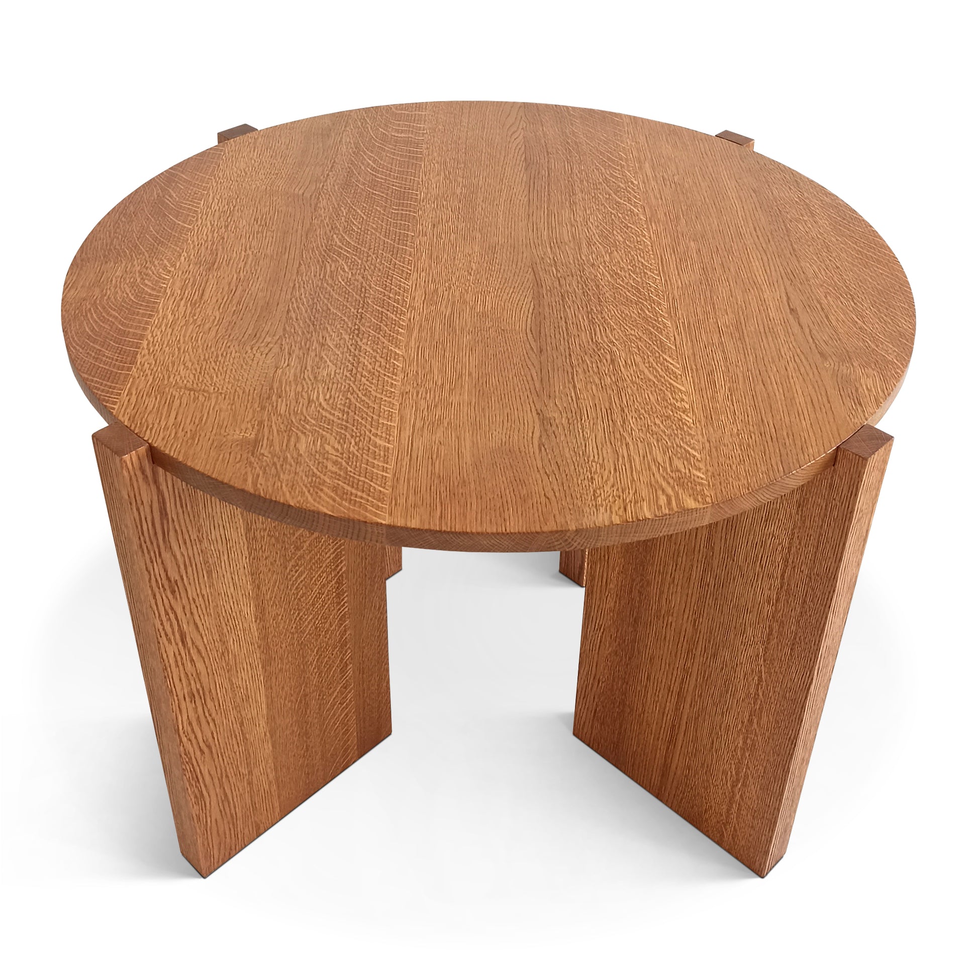 The Katzu Oak Coffee Table features a minimalist Japandi design, crafted from natural oak with a smooth, round 2 cm thick tabletop. Available in heights ranging from 20 to 45 cm, it combines clean geometric lines and sturdy angular legs, offering simplicity and warmth ideal for modern interiors.