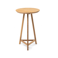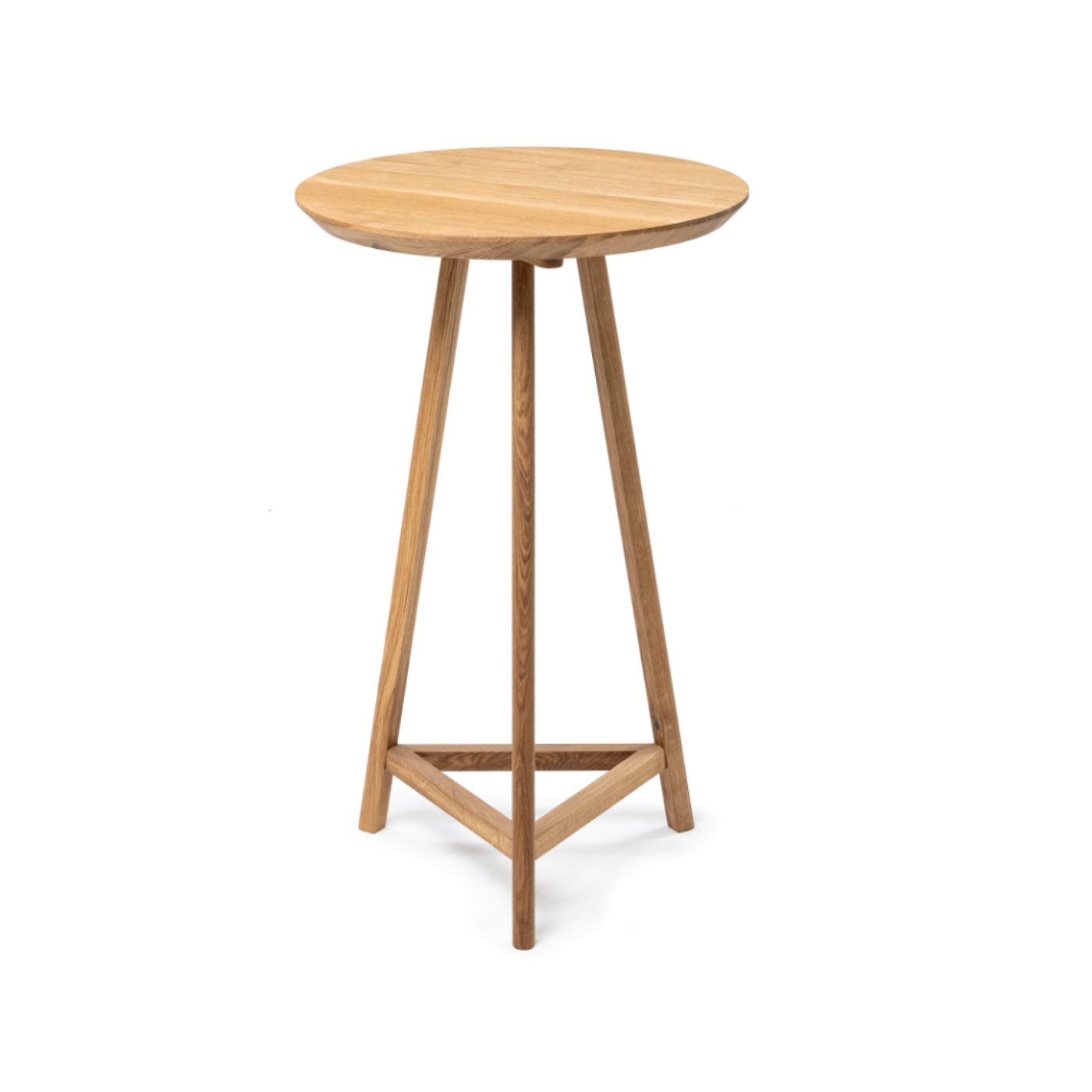 The bistro table is available in solid oak or oak veneer, offering a perfect balance of elegance and durability. Standing at 105 cm high with a 60 cm diameter, it’s designed for both style and practicality. The tabletop is finished with Osmo oil, providing a protective layer for enhanced durability and a refined, natural look.