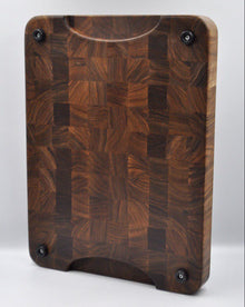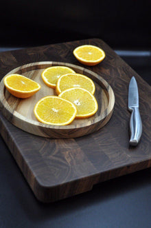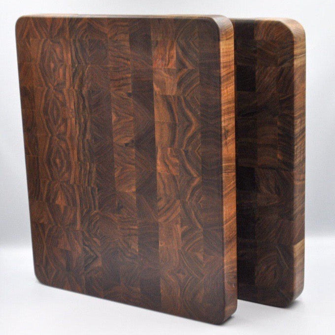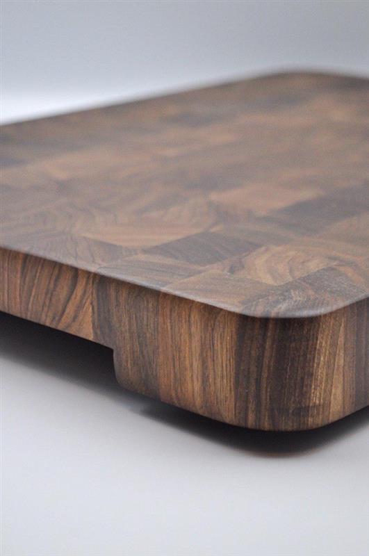 Handmade in the UK, this chopping board features a mix of hand-selected, contrasting walnut and maple woods.