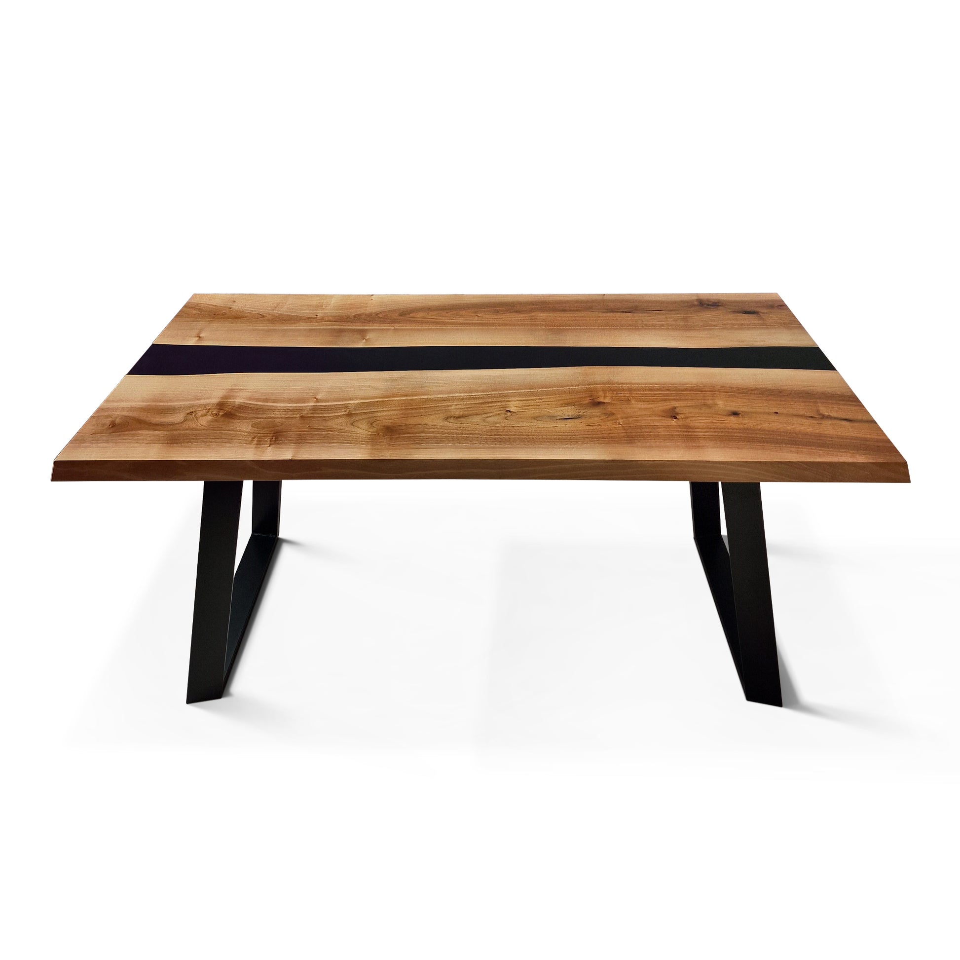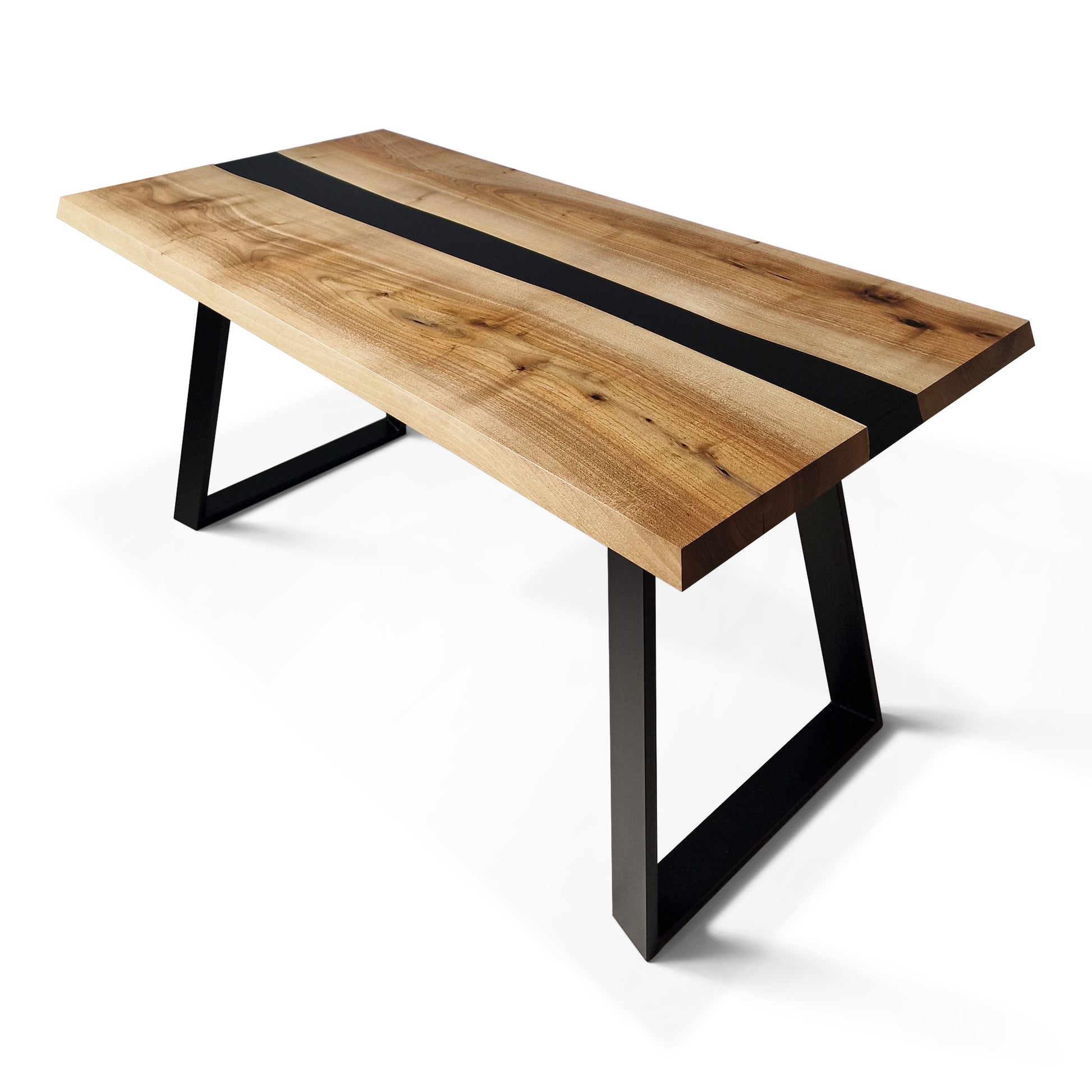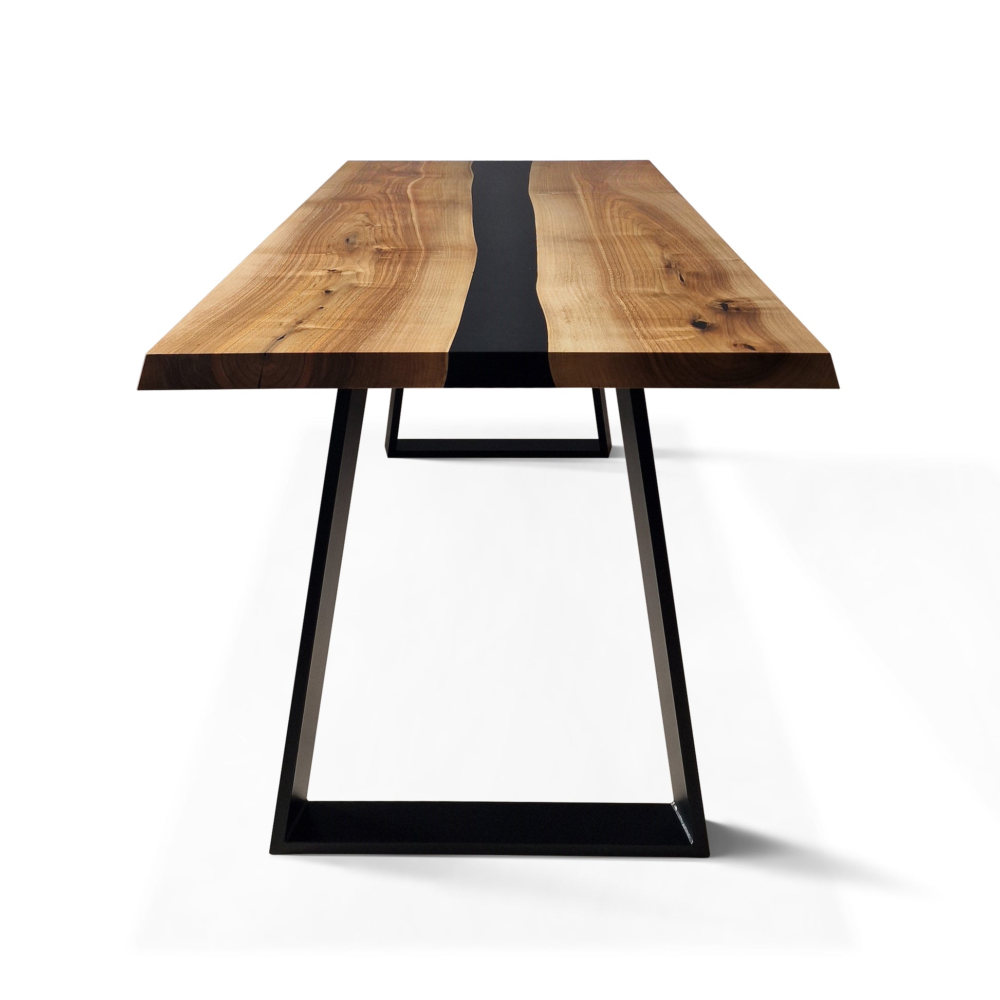Wabi Black Epoxy Table is made of walnut or oak, a beautiful, durable wood with contrasting colour notes. Each tray is therefore unique! The base of the table is made of steel, made to order, protected with a varnish against oxidation. It is one of the most recycled metals in the world. It goes perfectly with wood and adds character and authenticity to the River table.